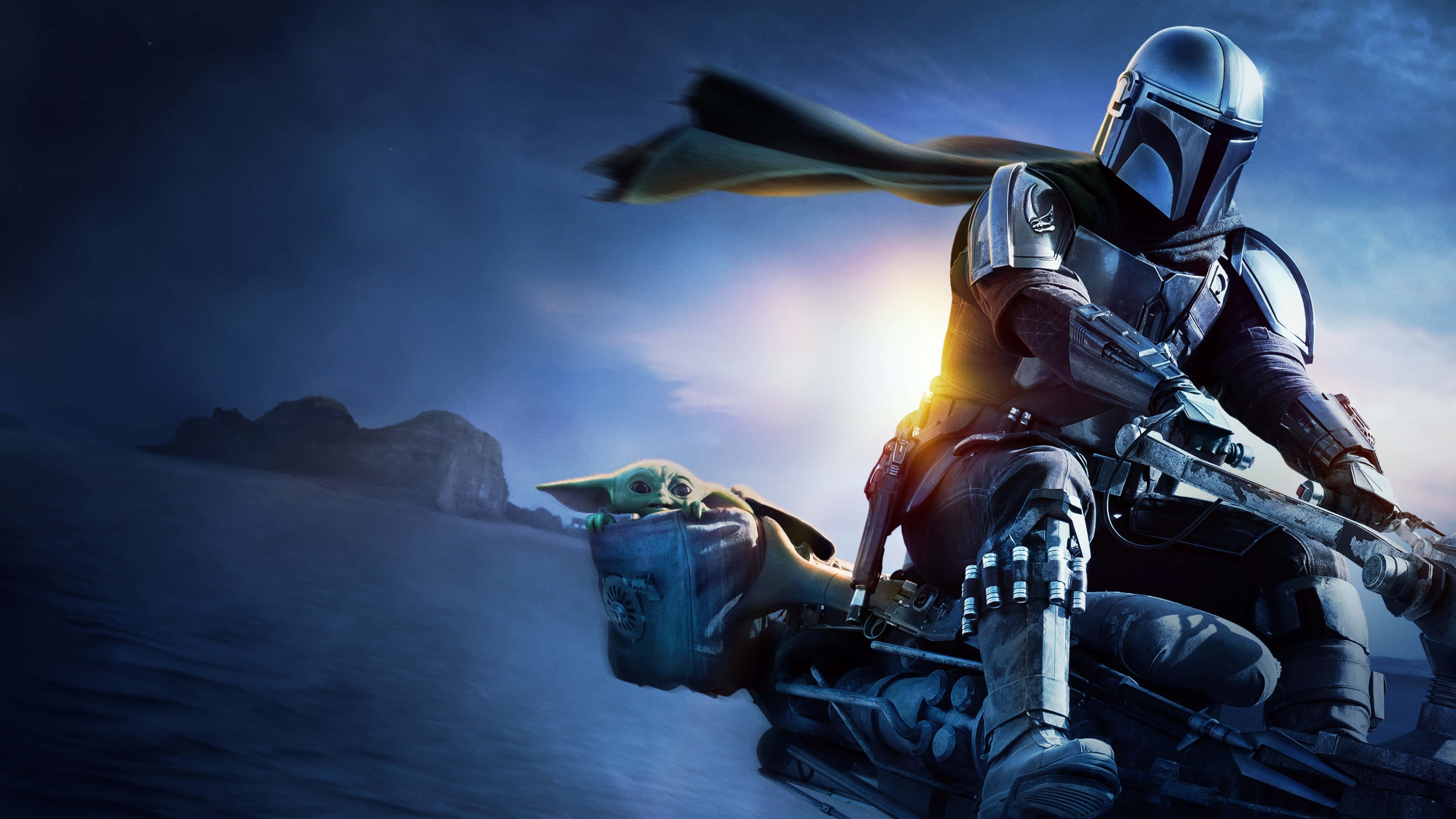Mandalorian Yoda On A Motorcycle Wallpaper