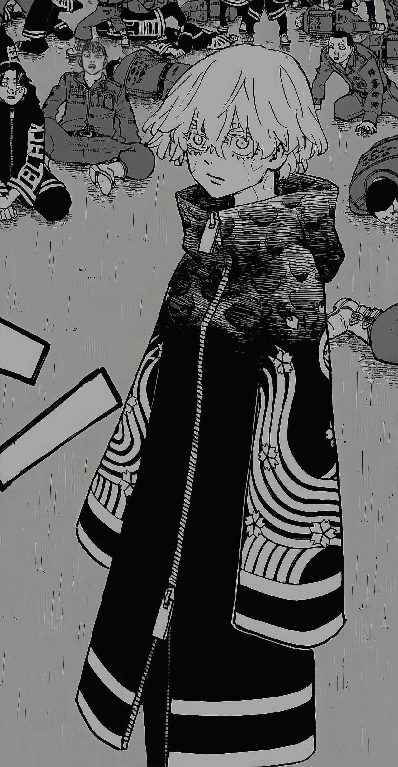 Manga Character Standing Among Fallen People Wallpaper
