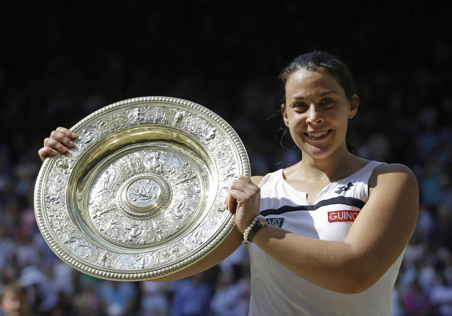 Marion Bartoli Triumphantly Lifting Her Wimbledon Trophy Wallpaper