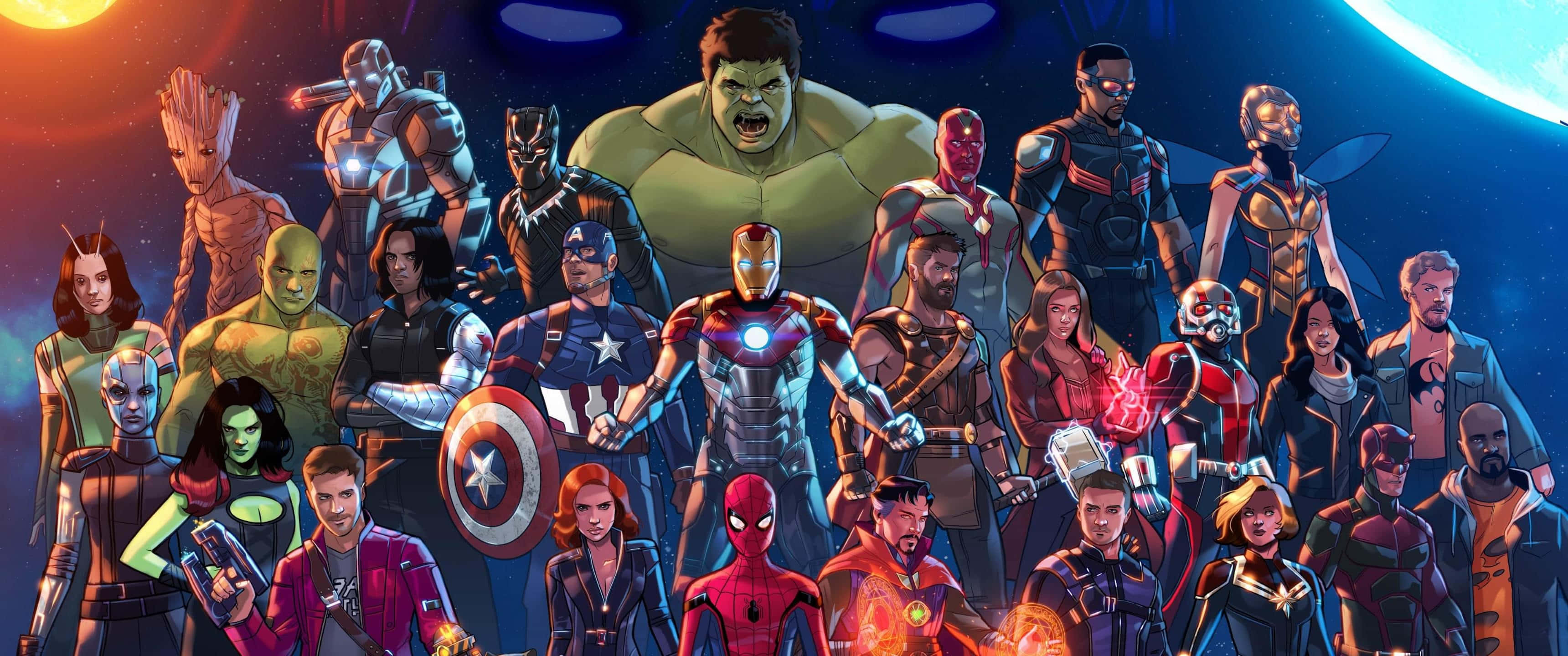 Marvel 3440 X 1440 Heroes Cartoon Art Wallpaper