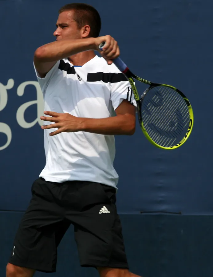Mikhail Youzhny In Action, Showcasing Tennis Skills Wallpaper