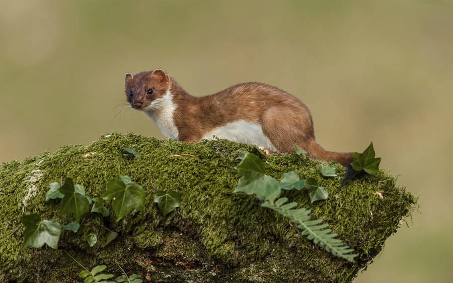 Mink On Green Moss Covered Rock Wallpaper