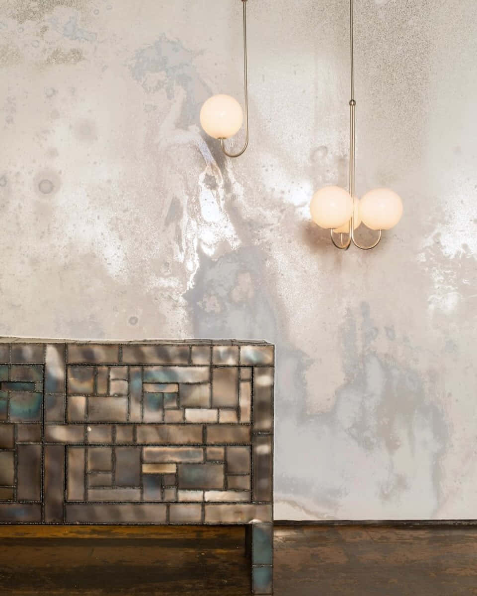 Modern Interiorwith Tiled Sofaand Pendant Lights Wallpaper