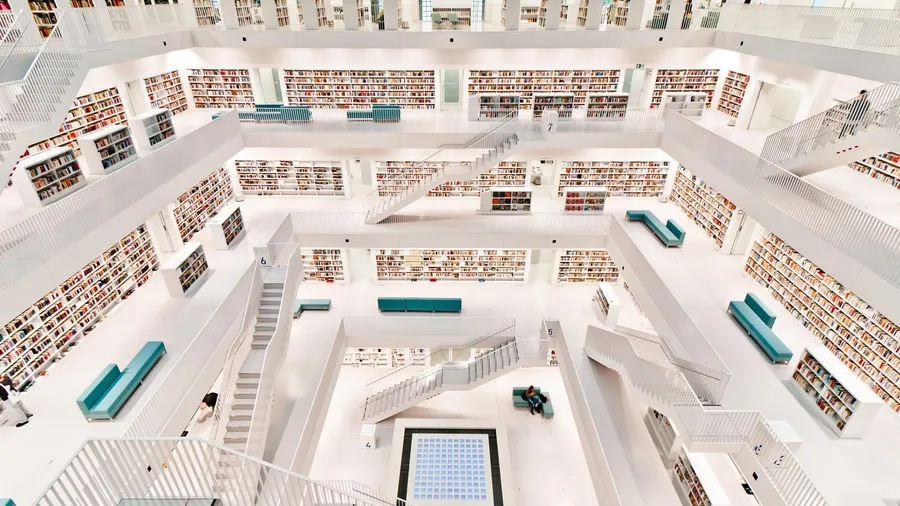 Modern Library Interior Wallpaper