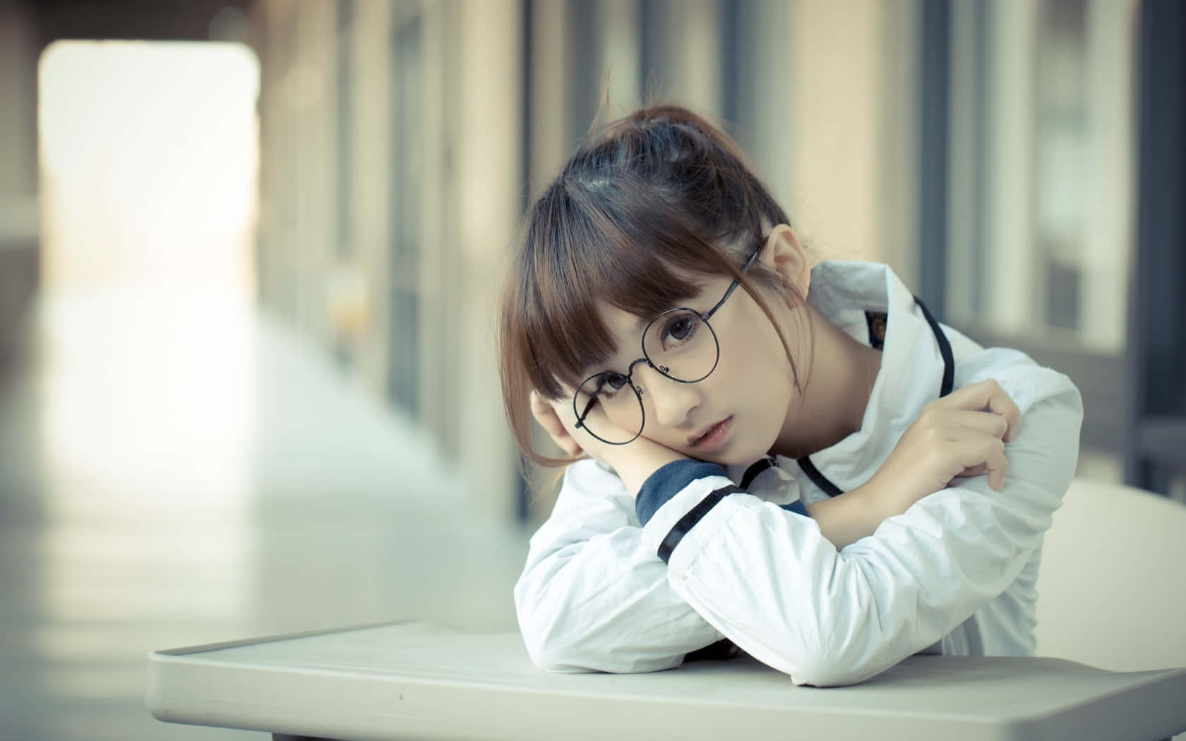 Modern School Girl Glasses Wallpaper