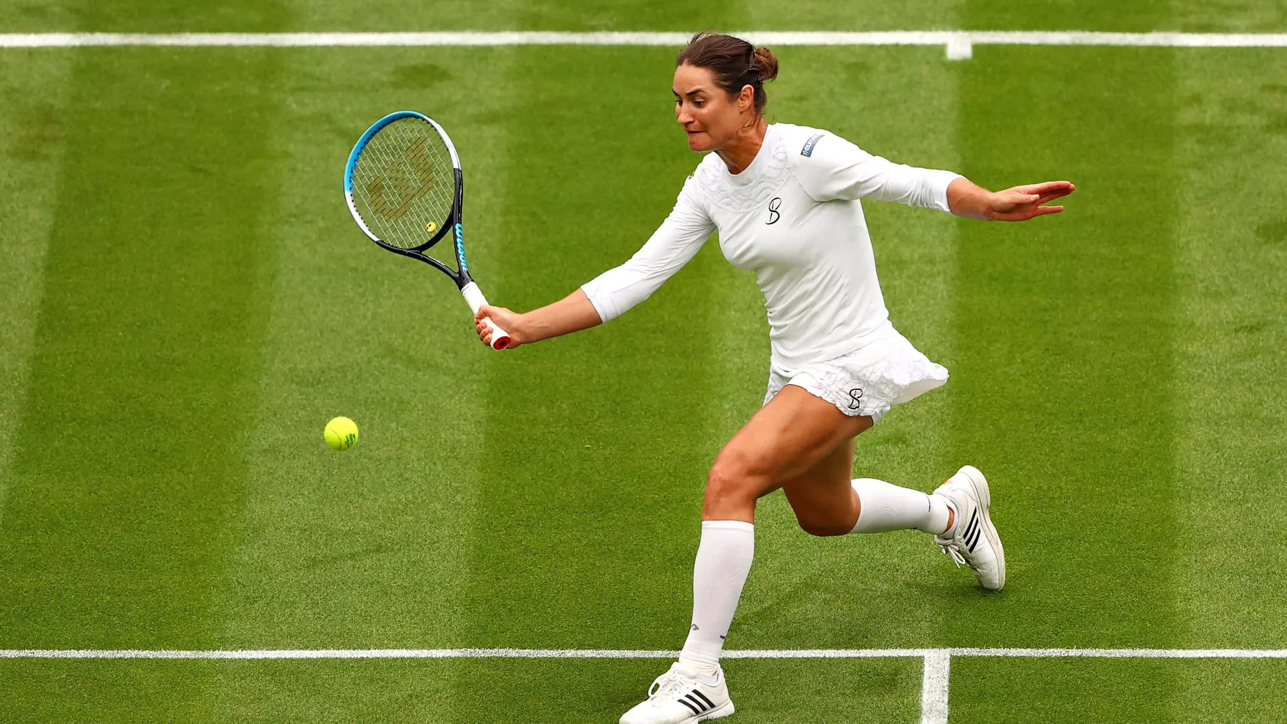 Monica Niculescu In Action, Wearing A White Tennis Outfit. Wallpaper
