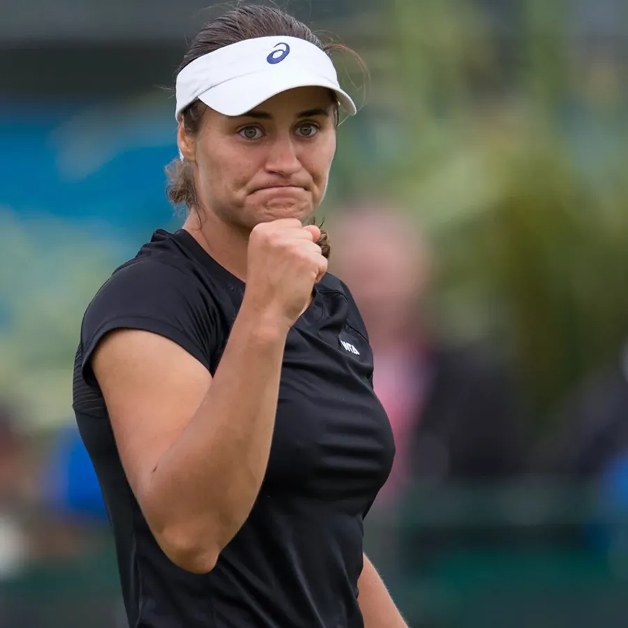 Monica Niculescu Triumphantly Clenches Her Fist On The Tennis Court. Wallpaper