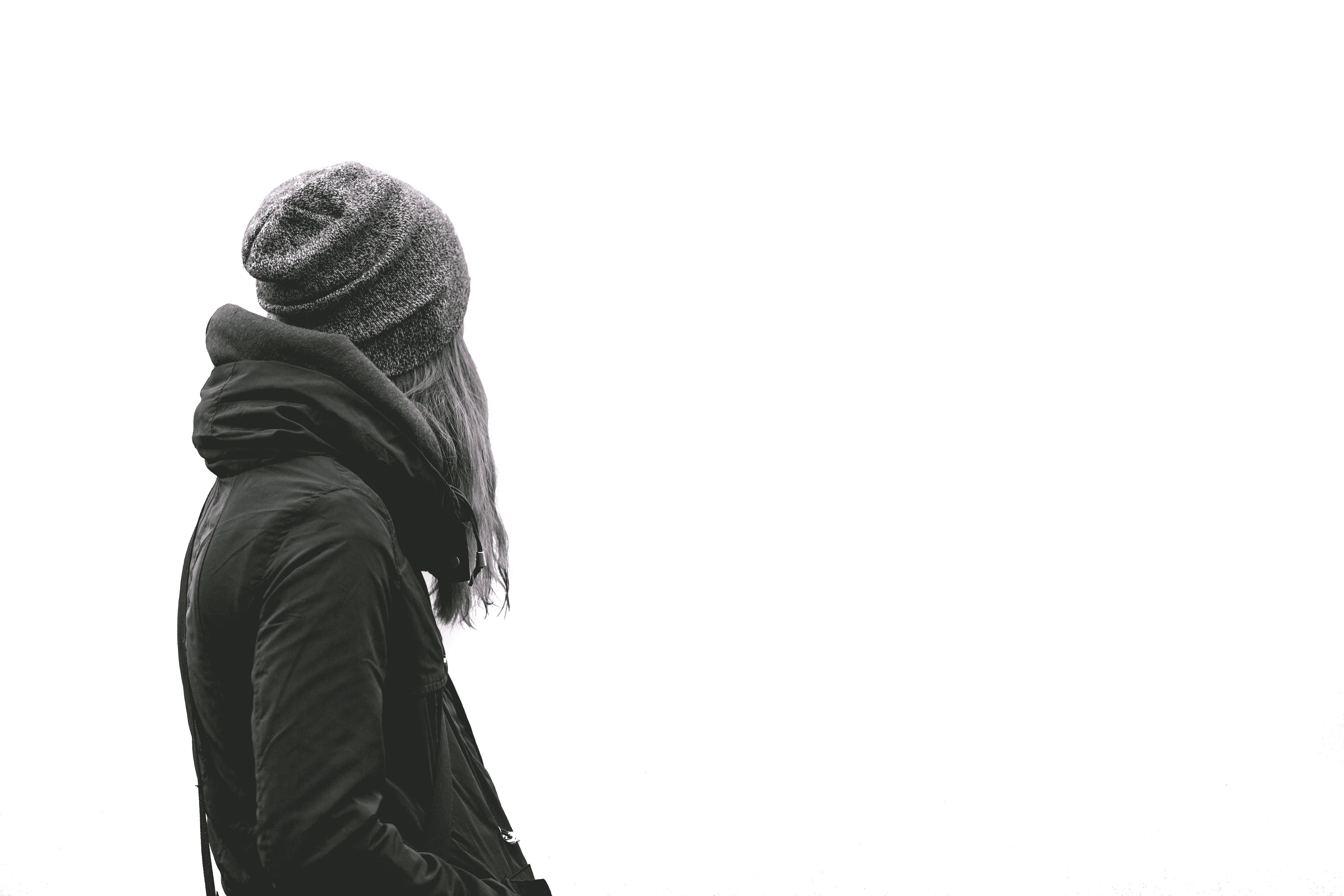 Monochrome Hoodie Girl With Beanie Wallpaper