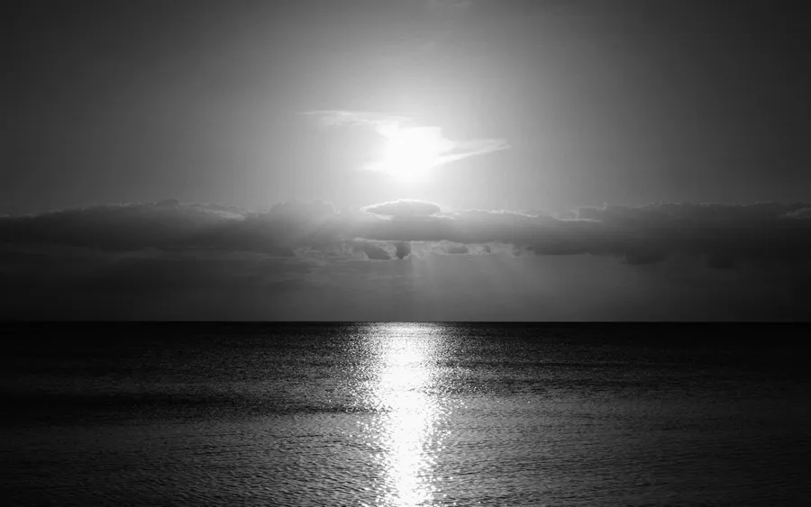 Monochrome_ Sunrise_ Over_ Calm_ Sea Wallpaper