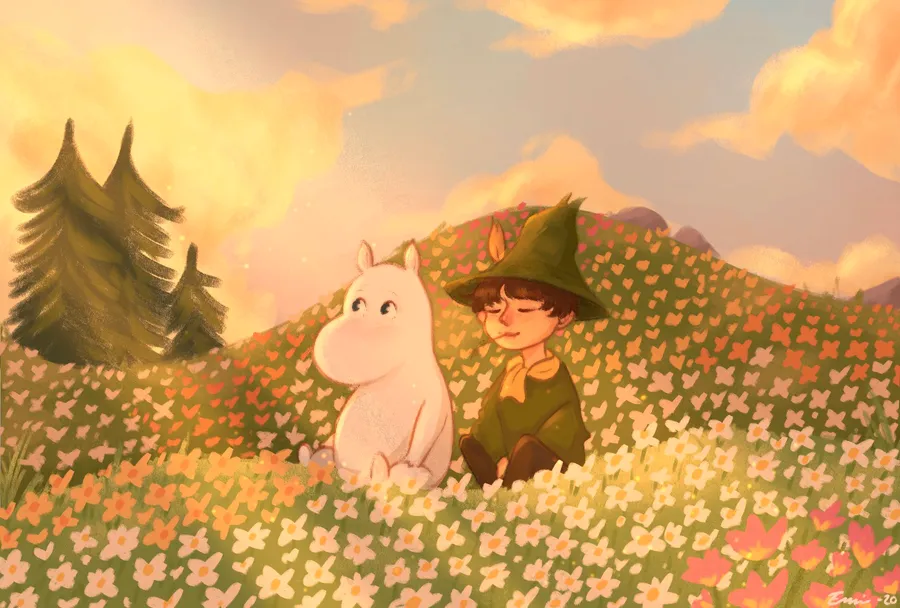 Moomin Desktop Relaxing Flower Field Wallpaper