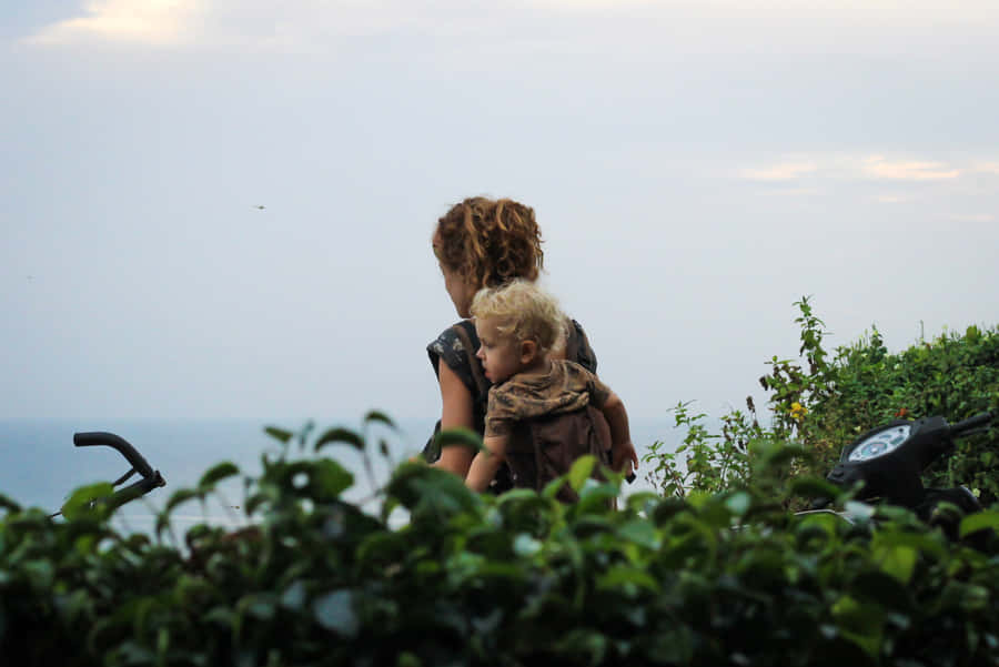 Mother Child Seaside Bonding Wallpaper
