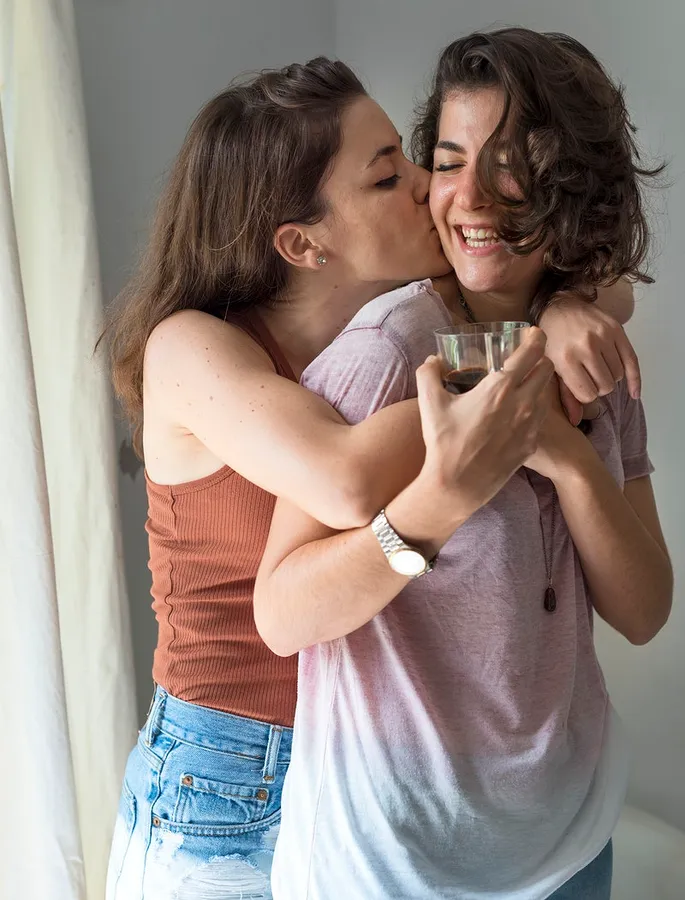 Mujeres Lesbianas Back Hug Wallpaper