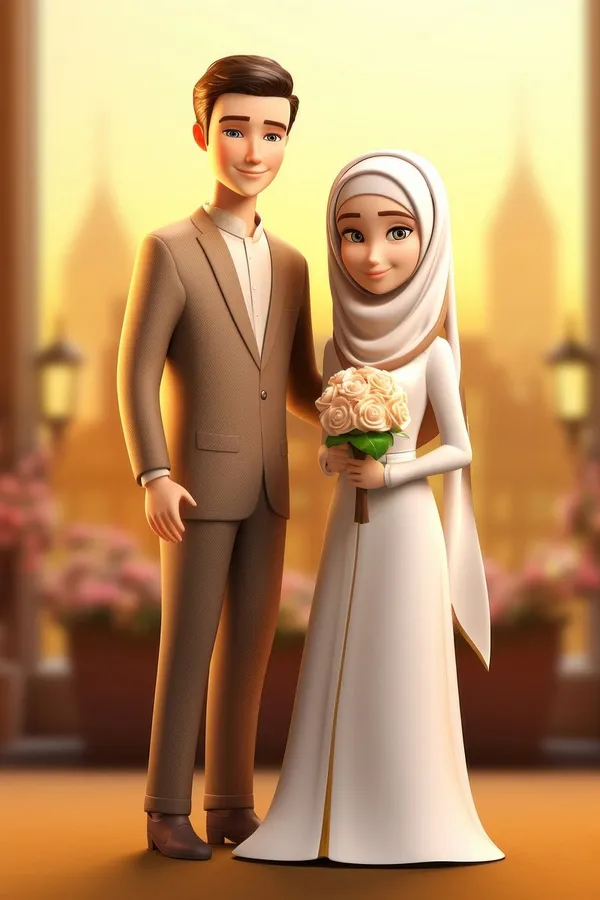 Muslim Couple Cartoon Wedding Wallpaper