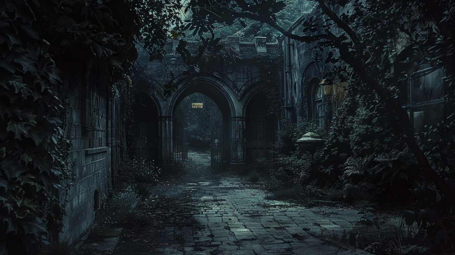 Mysterious_ Gothic_ Archway_ Night_ Scene.jpg Wallpaper