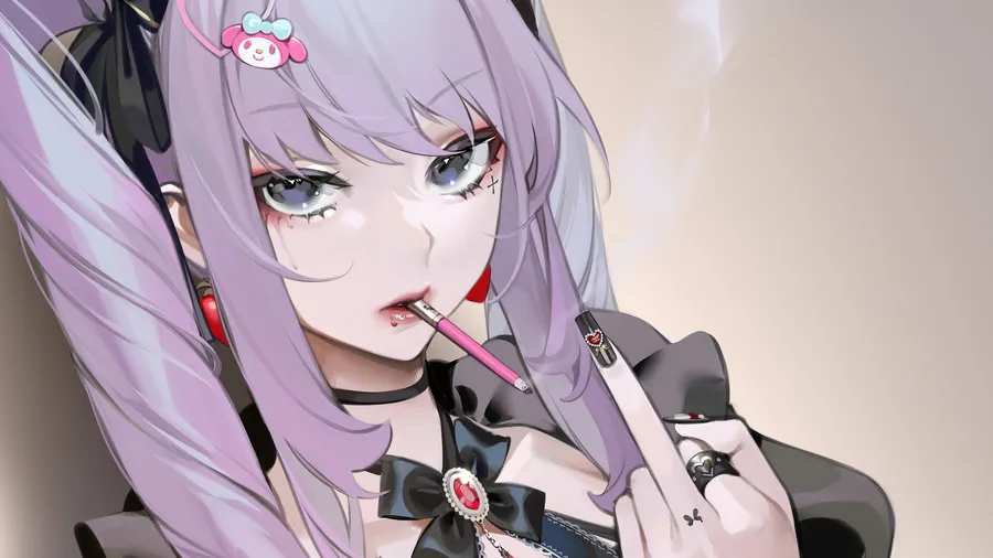 Mysterious_ Purple_ Haired_ Anime_ Girl Wallpaper