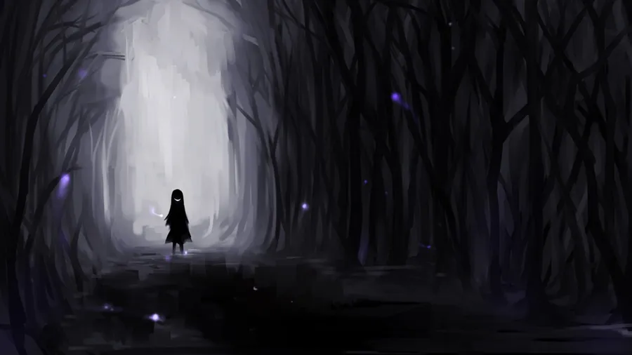 “mystical Shadows Dancing In A Dark Anime Artwork” Wallpaper
