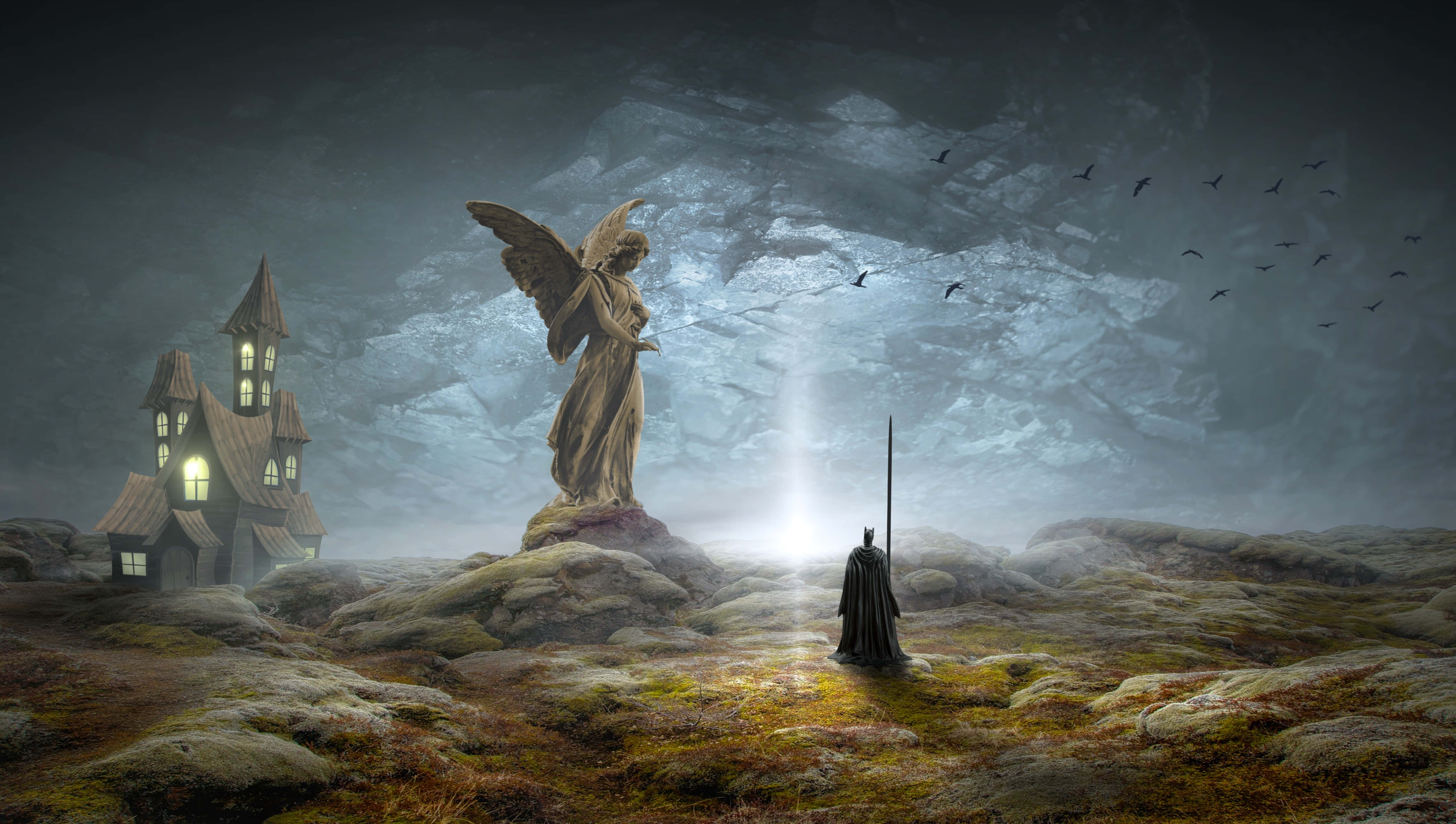 Mystical Witch With A Statue Wallpaper