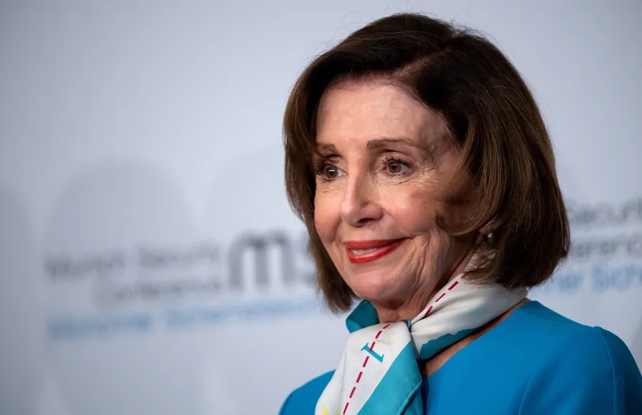 Nancy Pelosi In Blue Attire Wearing A Scarf Wallpaper