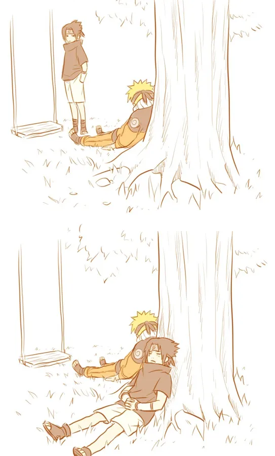 Naruto Swing With Sasuke By Tree Wallpaper