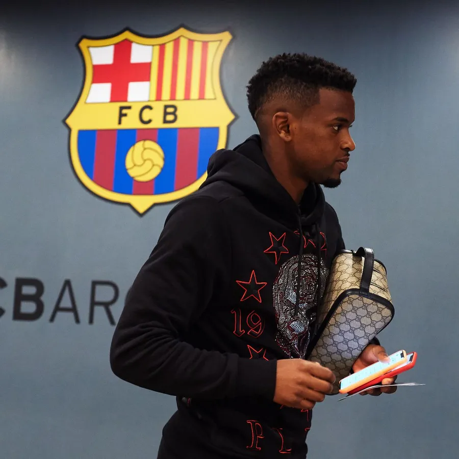 Nelson Semedo And Fc Barcelona Logo Wallpaper