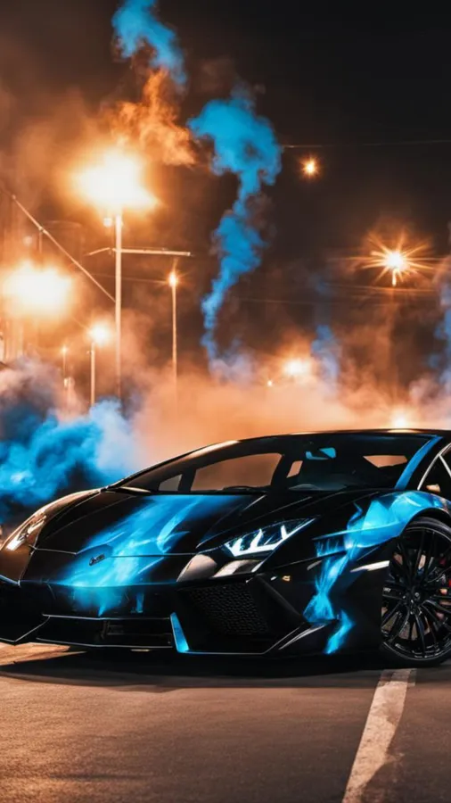 Neon Blue Lamborghini Night Scene Wallpaper