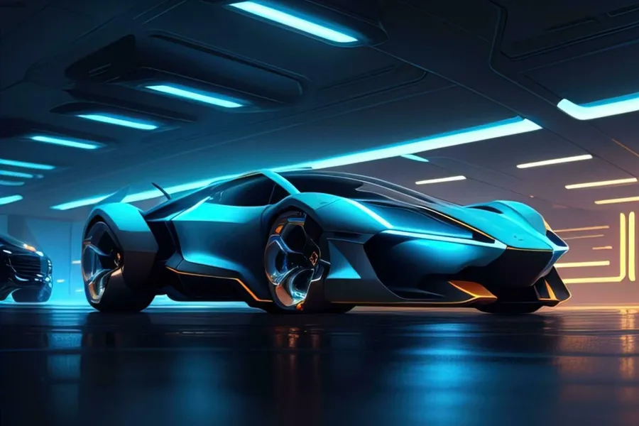 Neon Infused Lamborghini In Futuristic Garage Wallpaper