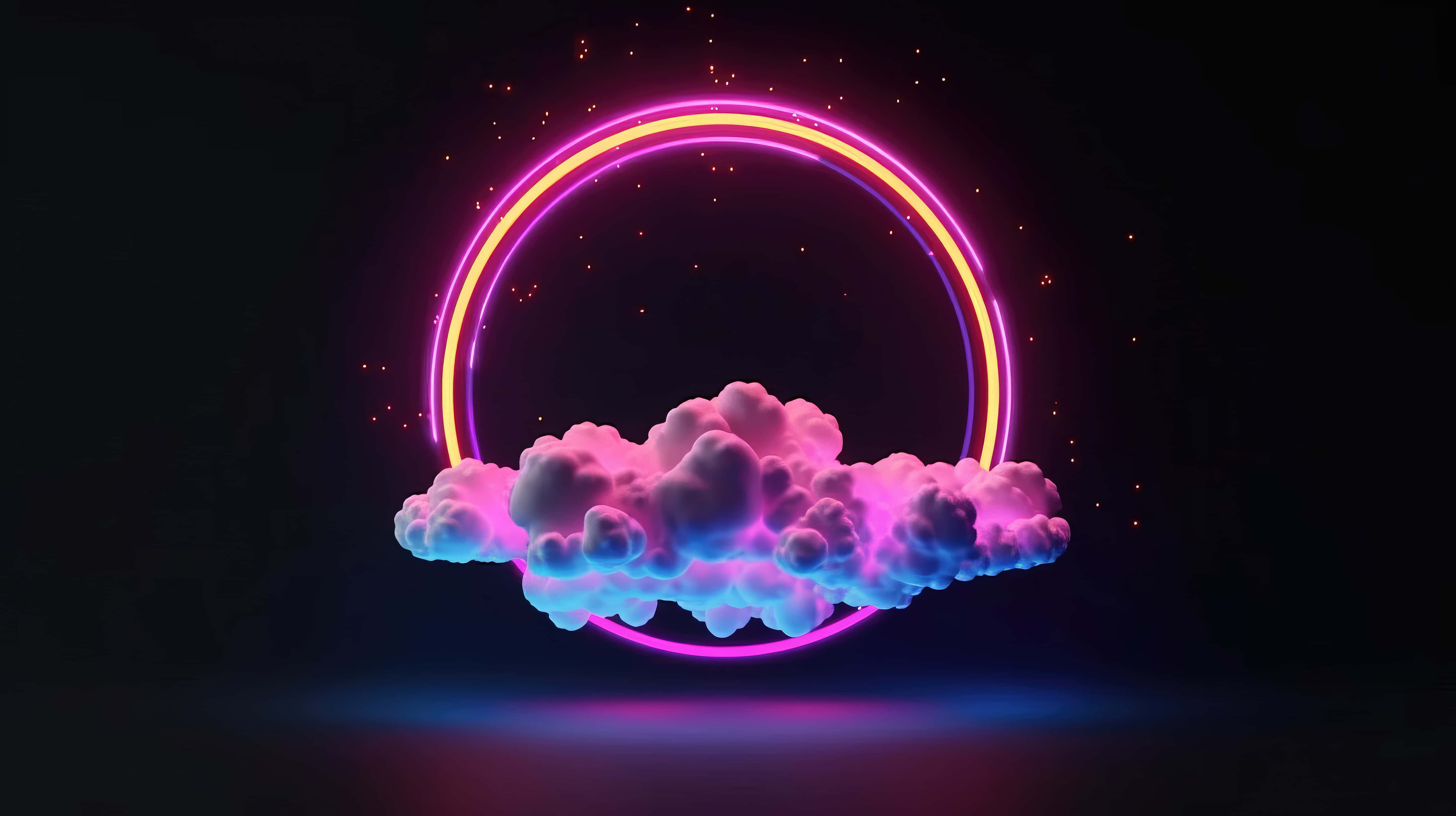 Neon Ring Clouds Fantasy Wallpaper