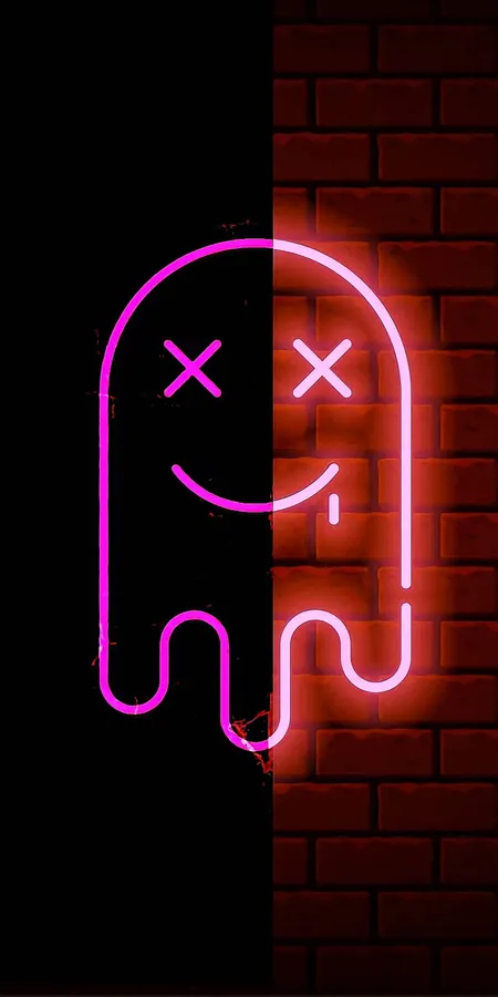 Neon Sign With A Smiling Face On A Brick Wall Wallpaper