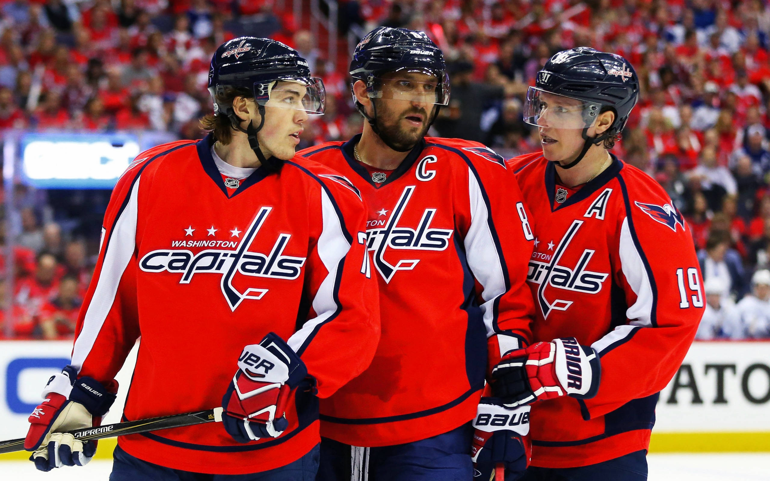 “nicklas Backstrom In Action With Oshie And Ovechkin” Wallpaper