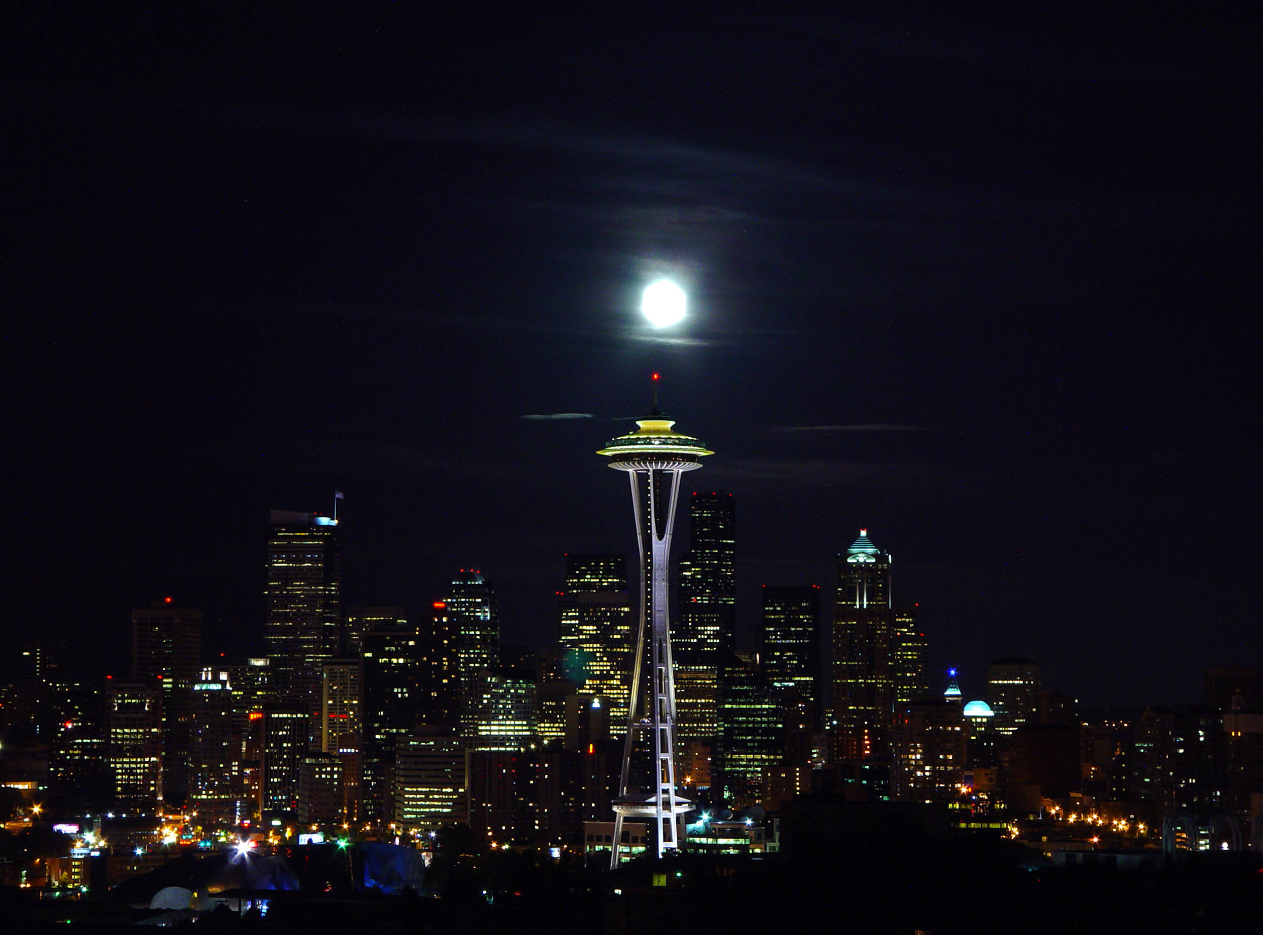 Night Seattle Skyline Space Needle Wallpaper