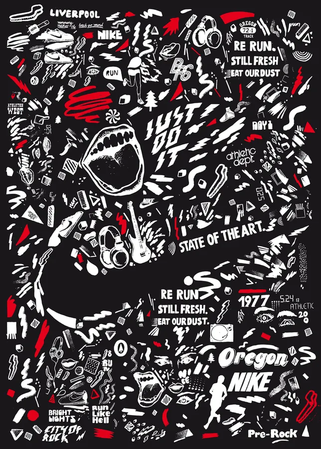 Nike Graffiti Random Doodles Red Wallpaper