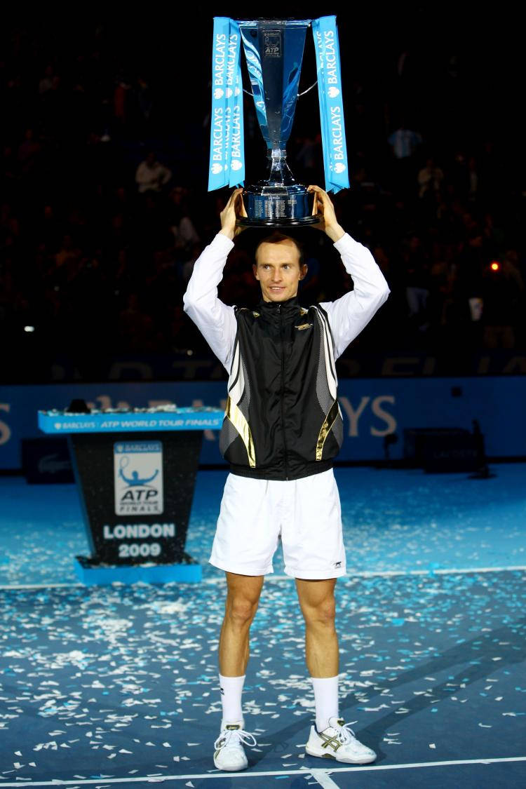 Nikolay Davydenko Raising Atp Trophy Wallpaper