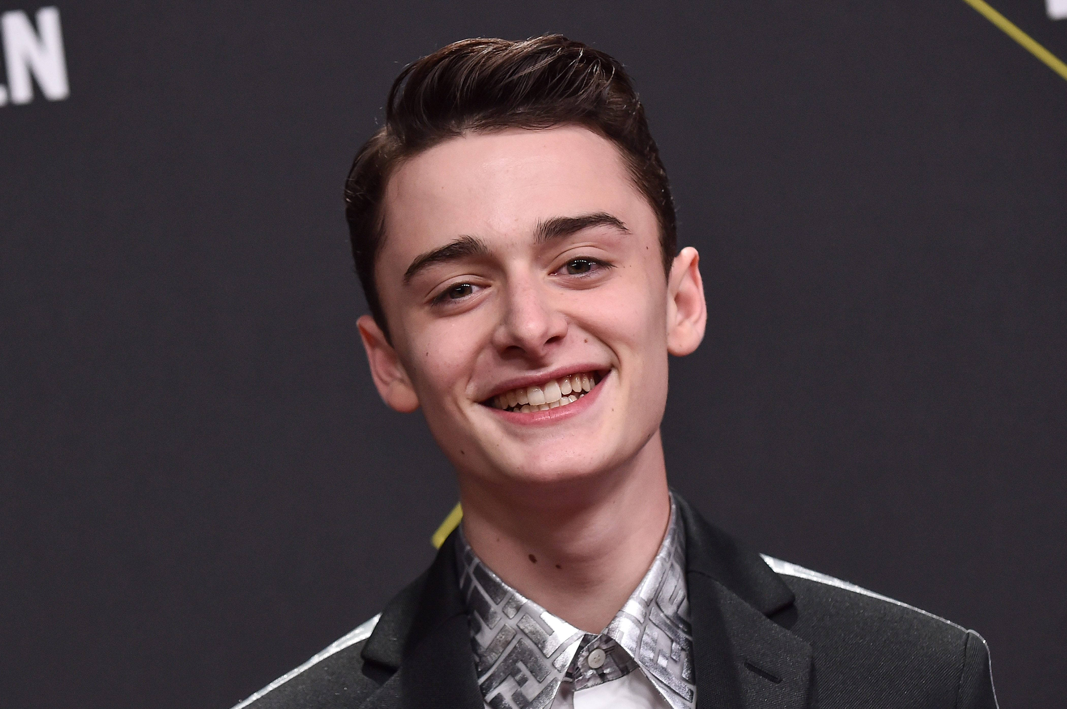 Noah Schnapp Smiling Against Dark Backdrop Wallpaper