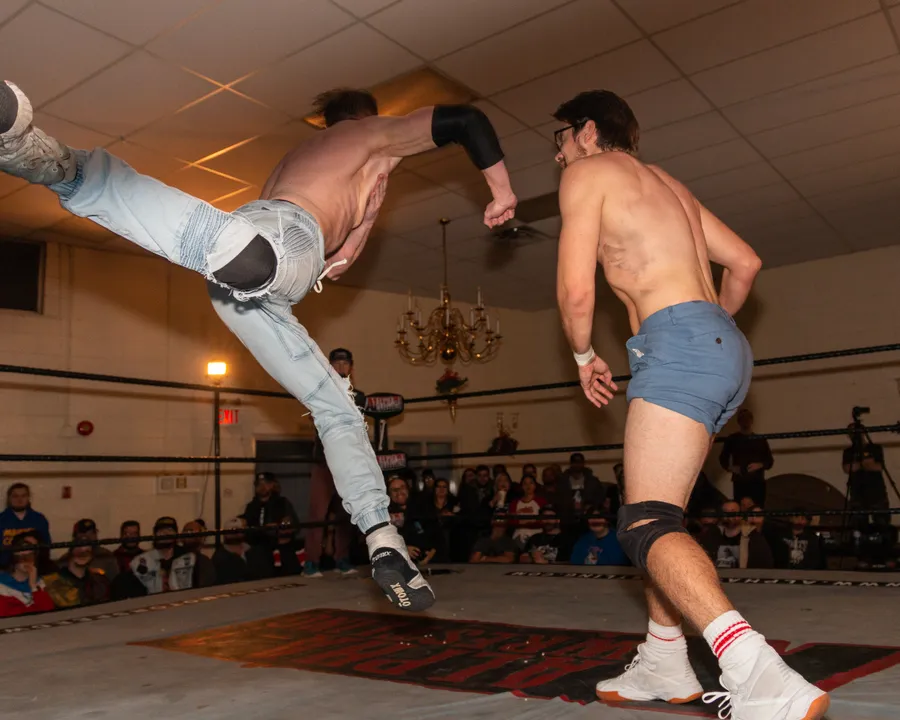 Orange Cassidy Delivering A Superman Punch In Pro Wrestling Match Wallpaper