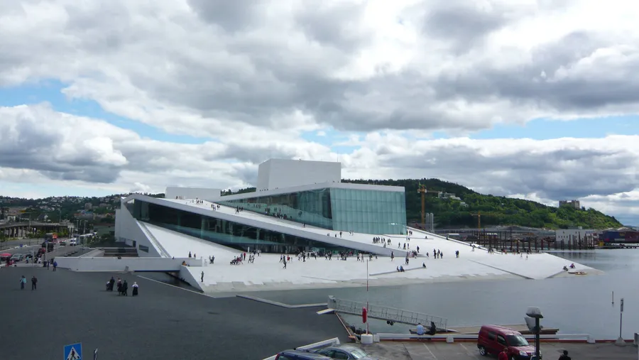 Oslo Opera House With Large Clouds Wallpaper