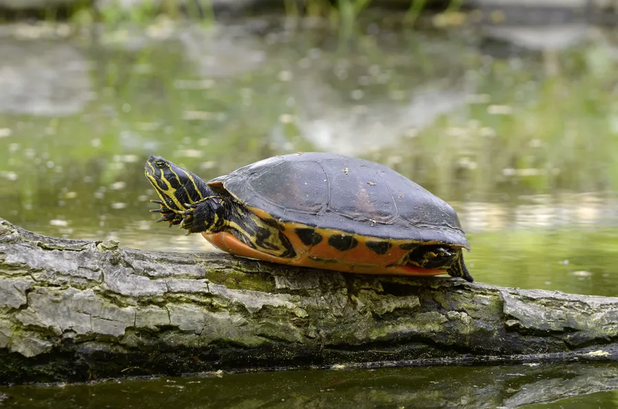 Painted Water Turtle On Wood Log Photography Wallpaper