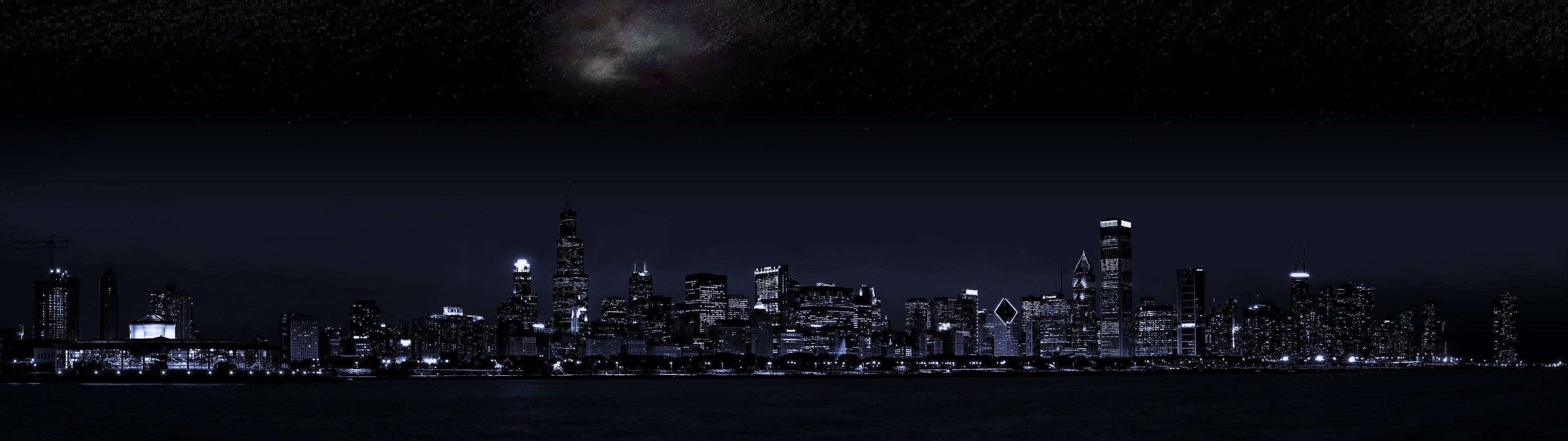 Panorama Urban City At Night Dark Aesthetic Wallpaper