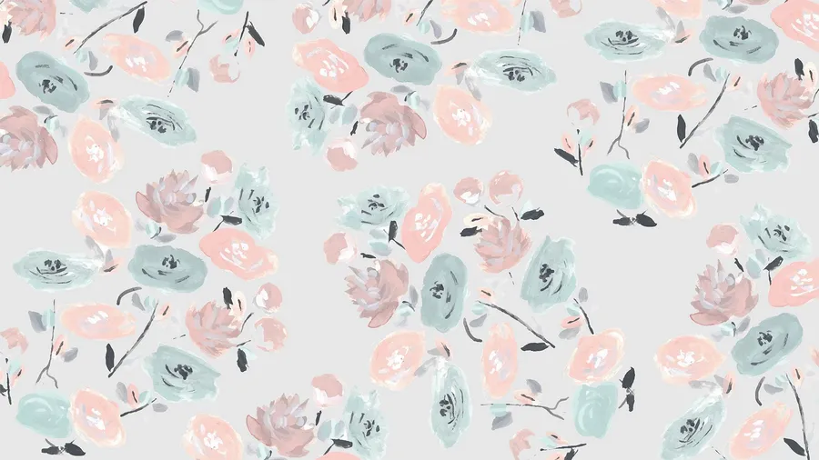 Pastel Blue And Pink Cute Floral Landscape Wallpaper