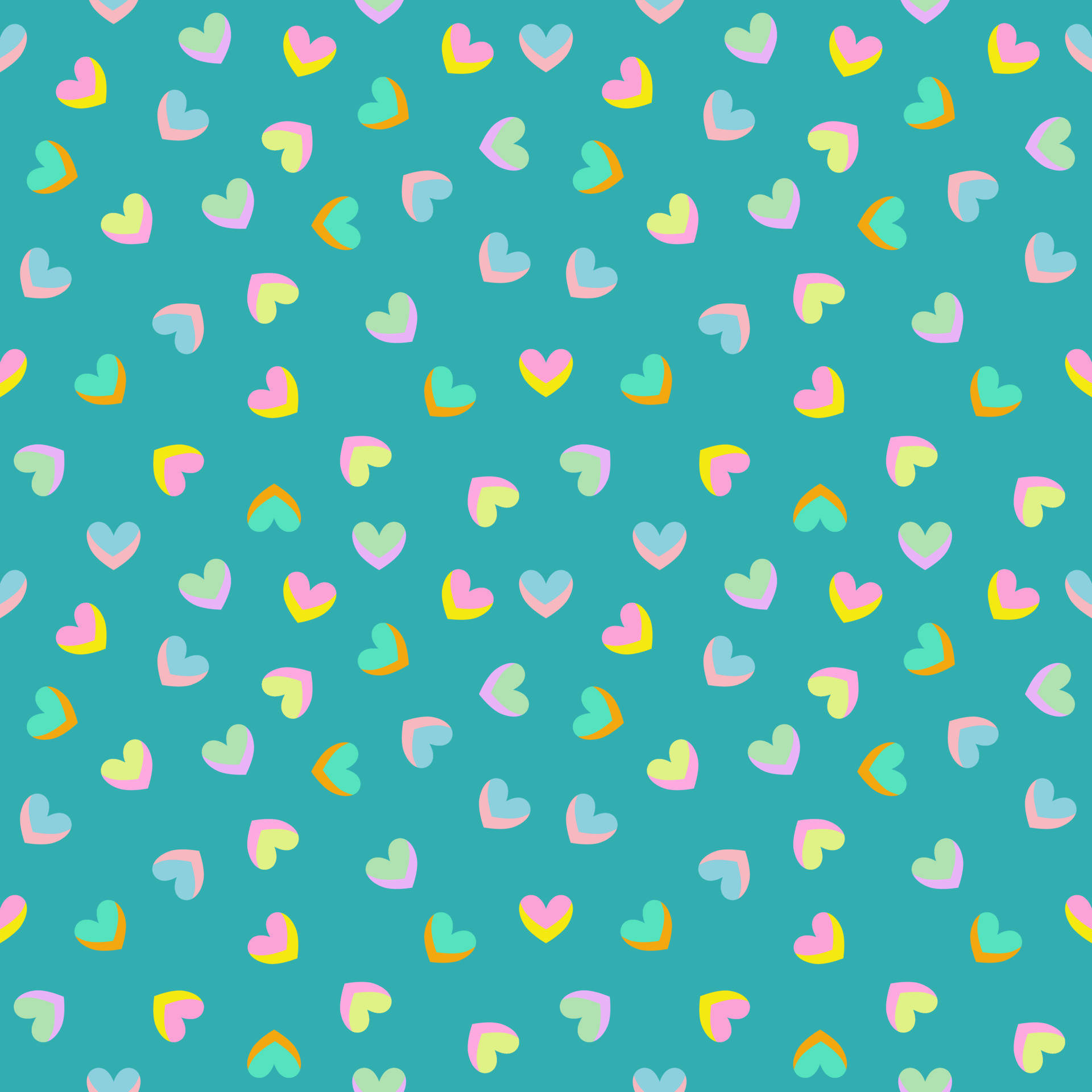 Pastel Teal Rainbow Hearts Wallpaper