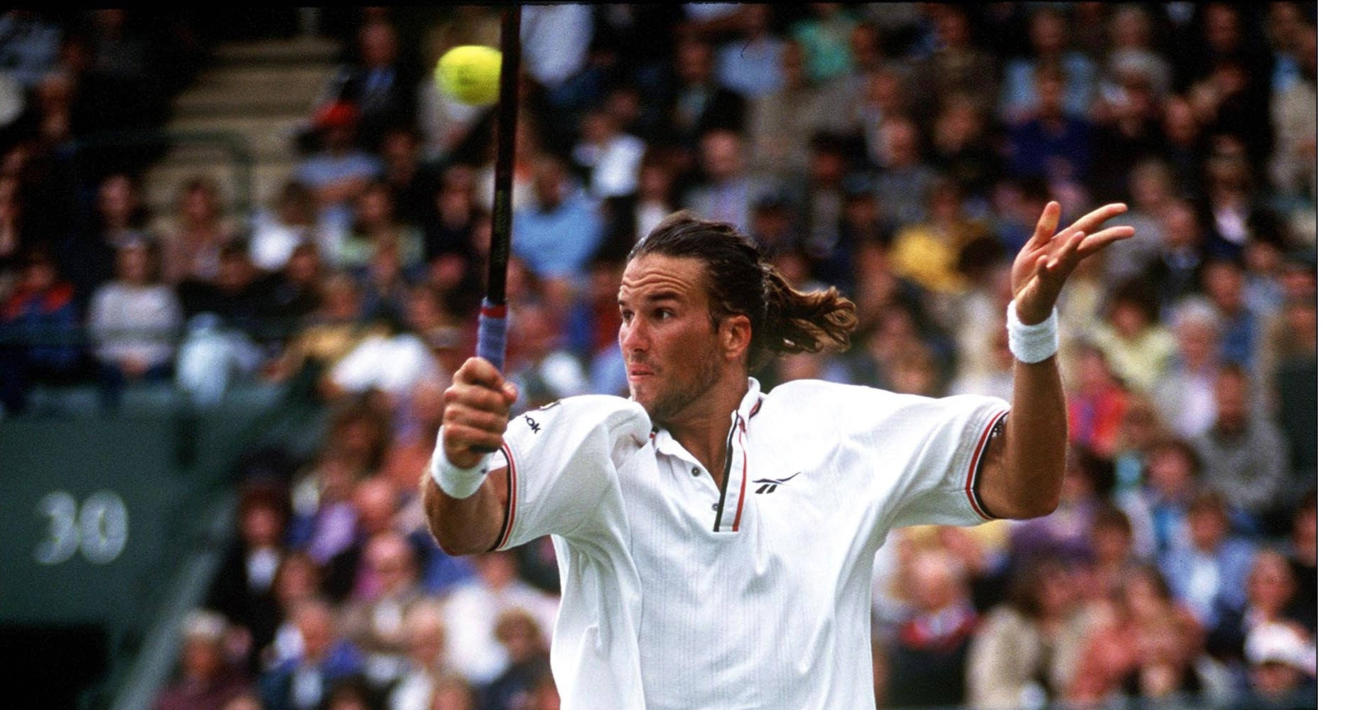 Patrick Rafter Executing A Powerful Backhand Shot Wallpaper