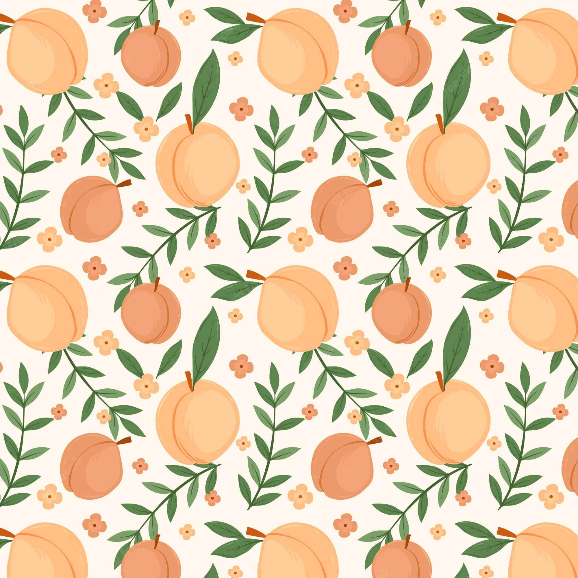 Peach Pattern With Leaves And Flowers Wallpaper