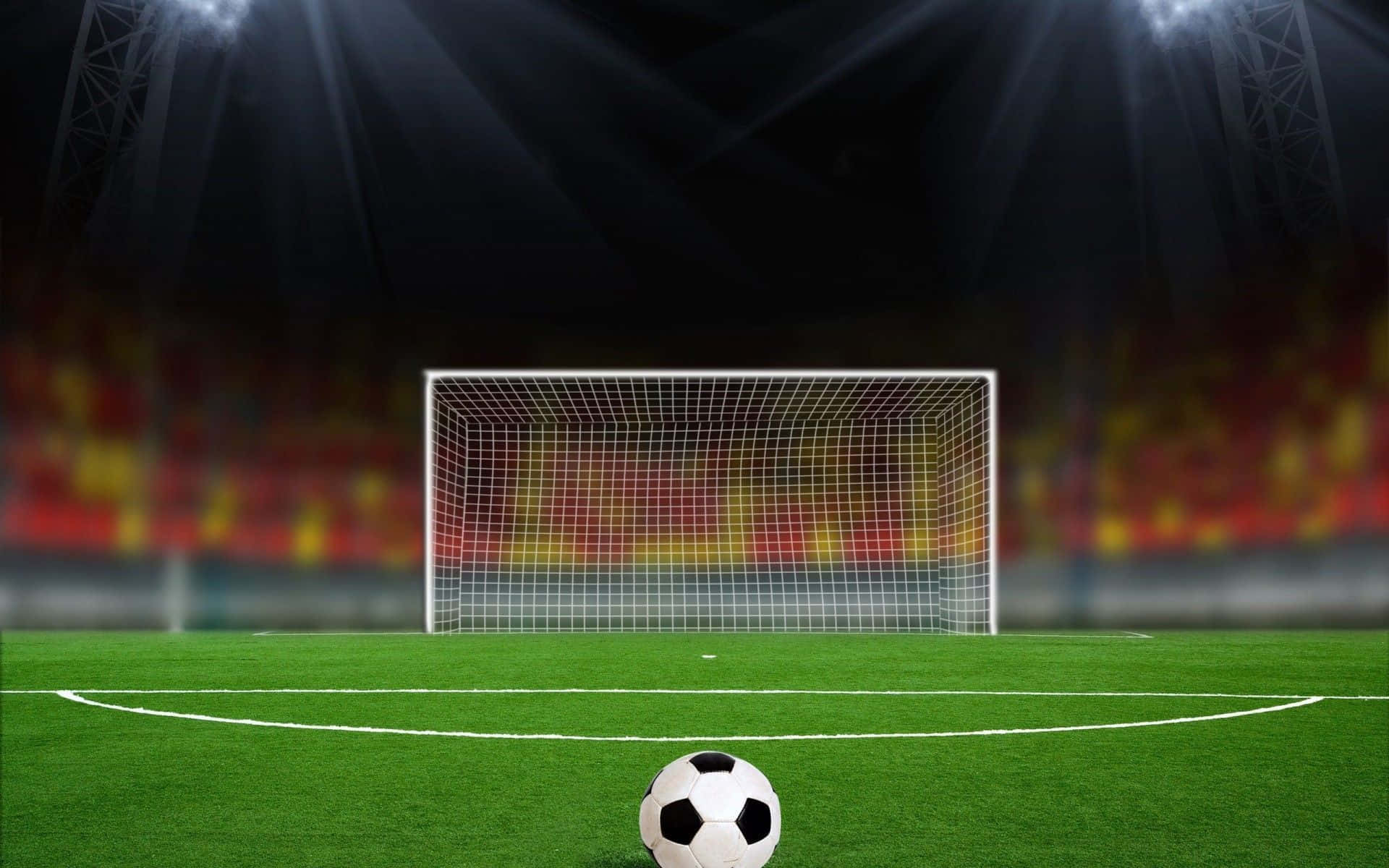 Perspective Of Soccer Ball In Football Field Wallpaper