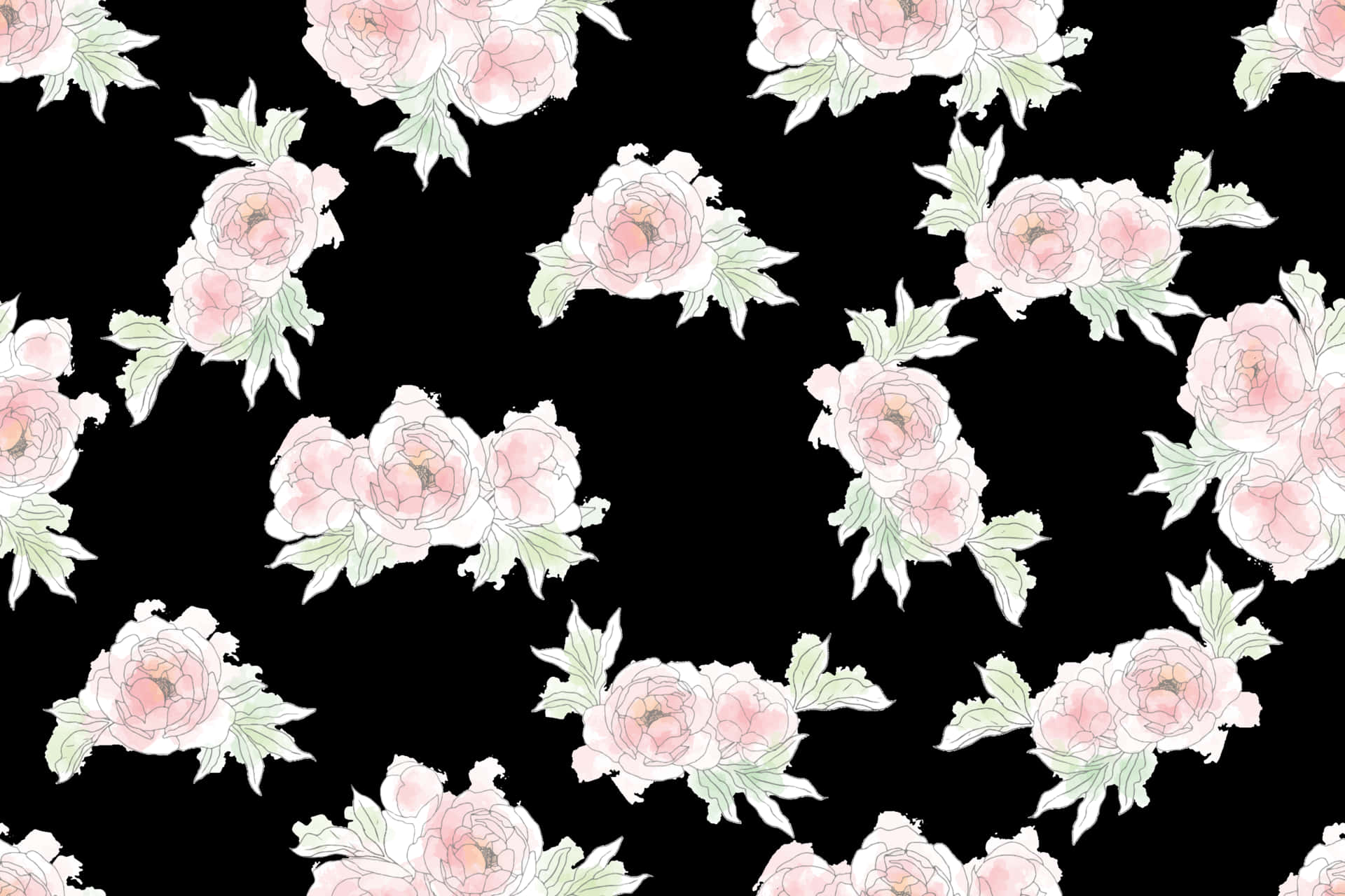 Pink Roses On Black Background Wallpaper