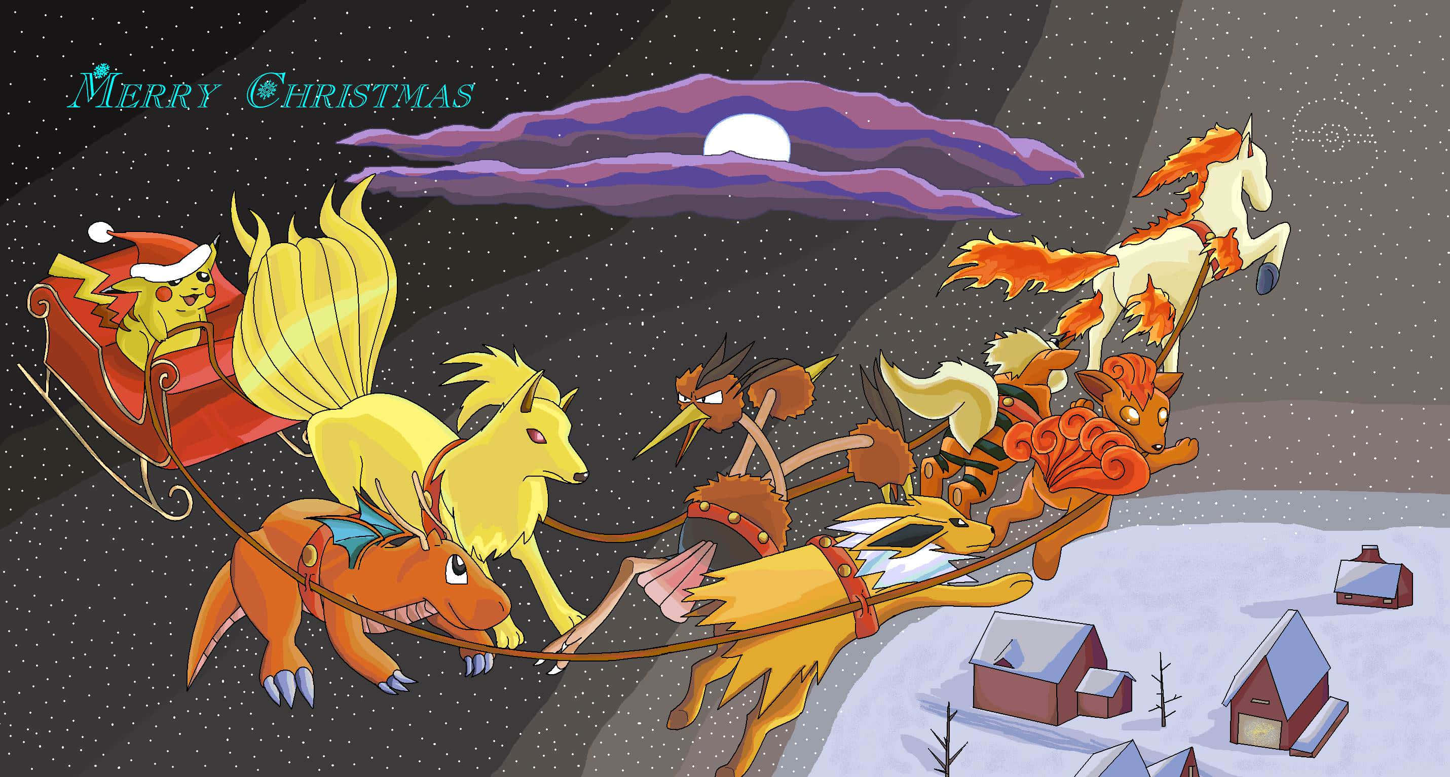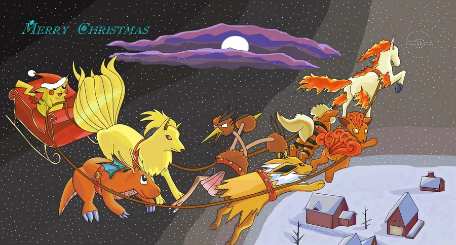 Pokémon Christmas Pikachu In Sleigh Wallpaper