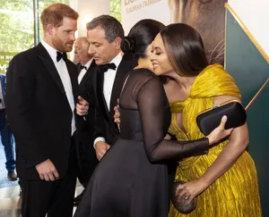 “prince Harry In A Thoughtful Moment With Meghan Markle In The Background.” Wallpaper