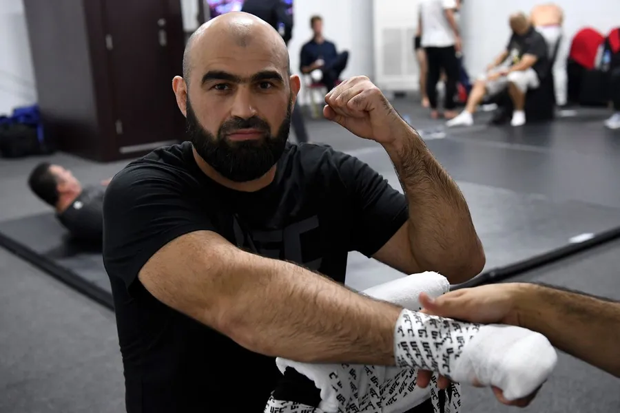 “professional Fighter Shamil Abdurakhimov Wrapping His Hands Prior To Training” Wallpaper