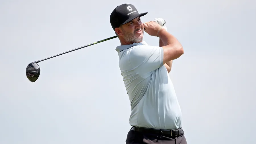 Professional Golfer, Scott Piercy, Posing Against A Grey Backdrop. Wallpaper
