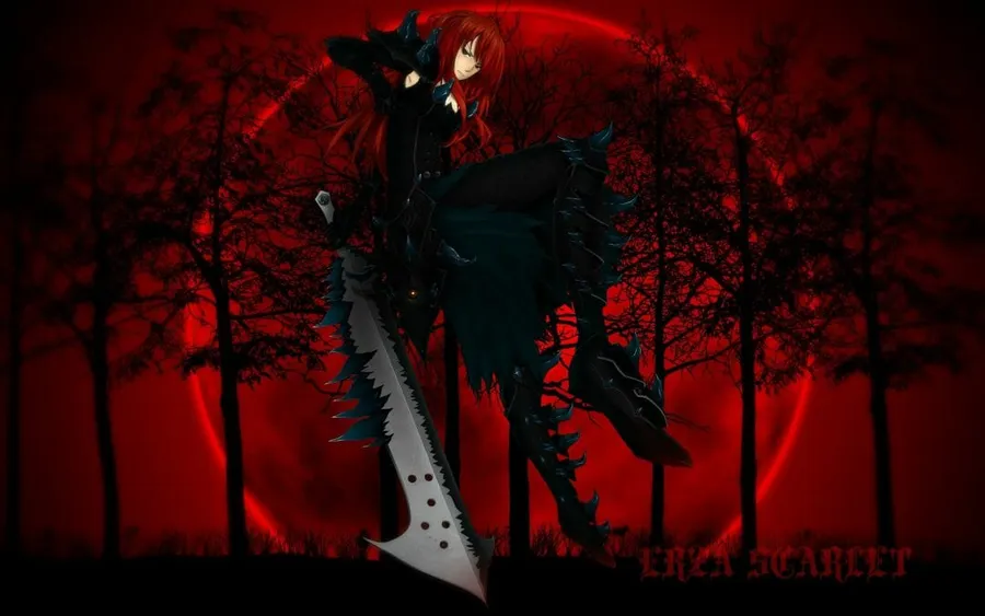 Punk-goth Girl In Red And Black Anime Style Wallpaper
