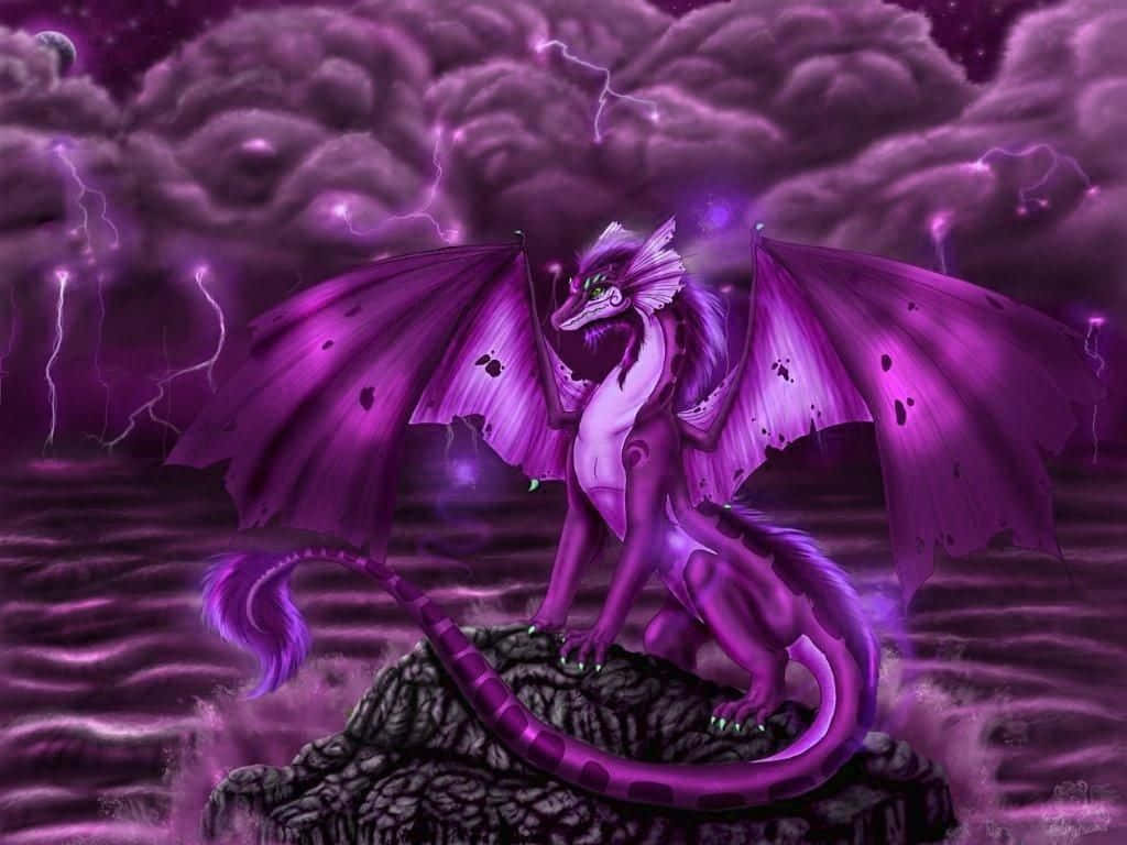 Purple Dragon Sitting On Stone Wallpaper