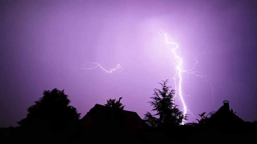 Purple Lightning With Dark Trees Wallpaper